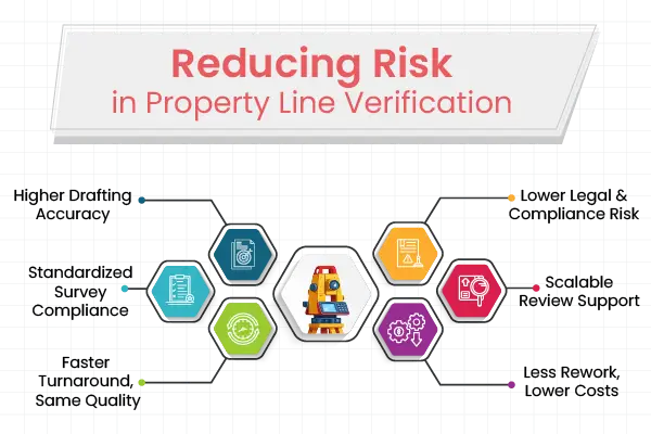 Property line verification needs strict adherence to local and statutory standards and outsourcing survey drafting partners to follow standardized workflows and QA/QC checks. This consistency lowers the risk of errors, which leads to disputes or resurveys.